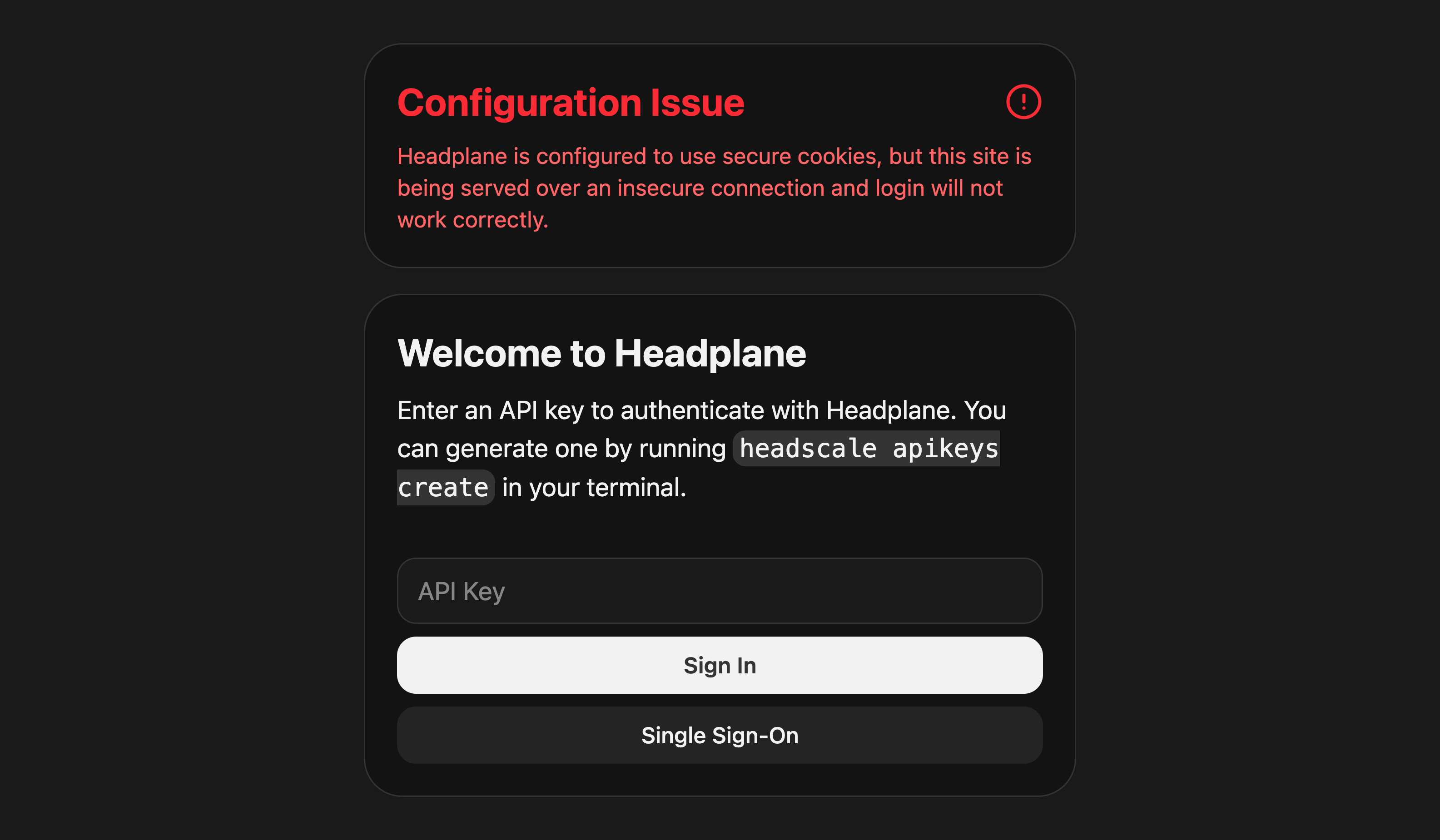 Headplane tries to detect misconfigurations and will surface a warning banner on the login page if it detects any abnormalities. You may see a banner like this: